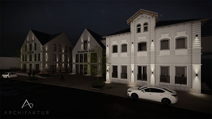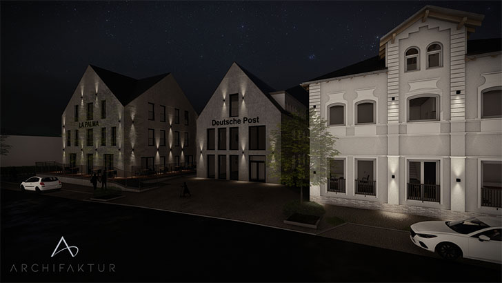 Inzwischen ist die Gemeindeverwaltung kräftig in der Sanierung, wir planen die Hundemstraße 29.